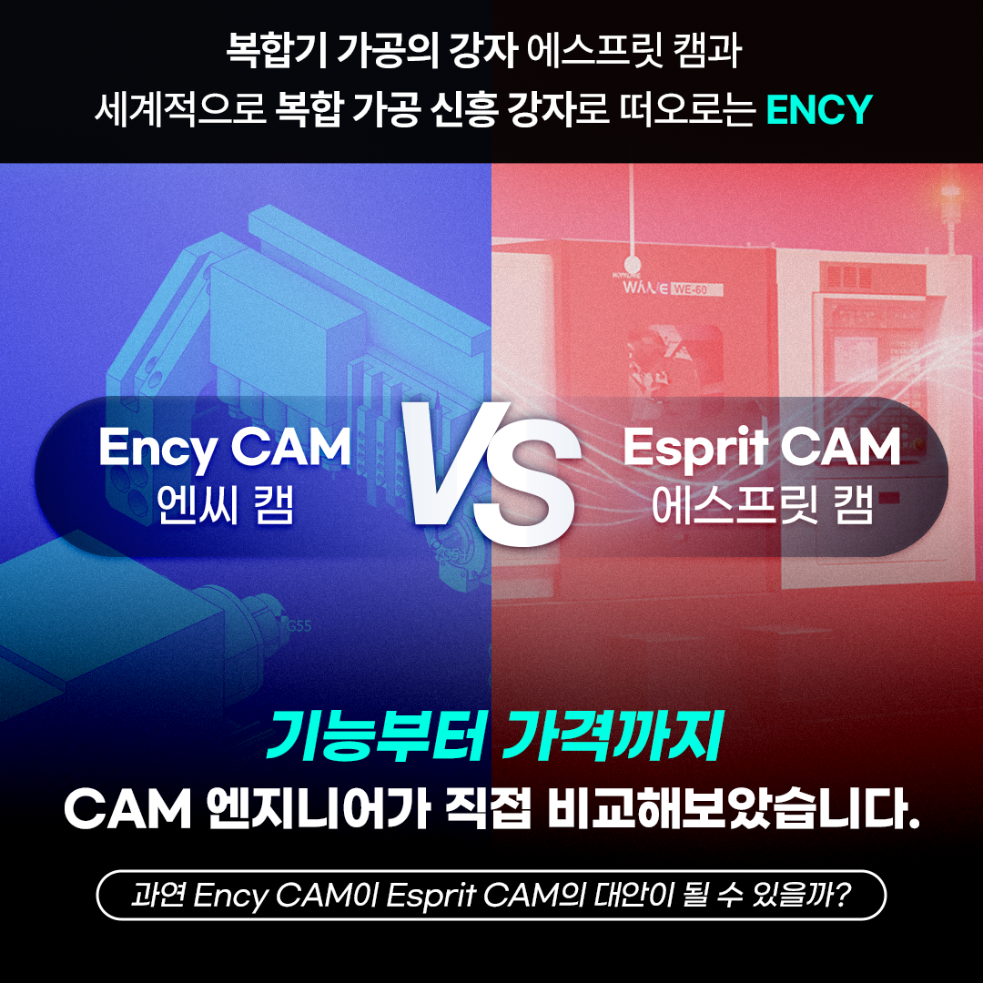 ESPRIT vs ENCY CAM 턴밀 장비/ 스위스타입 / 복합기 장비를 제어하기위한 CAM 소프트웨어를 검토할 때 많은 분들이 가장 먼저 비교하는 두 가지가 있습니다. 바로 ESPRIT과 ENCY CAM입니다.ESPRIT은 이미 시장에서 검증된 하이엔드 CAM 솔루션으로,턴밀, 스위스타입, 5축 가공 등 고난도 부품가공에서 강력한 기능을 제공합니다.그래서 자연스럽게 이런 질문이 나옵니다.👉 “ENCY로 ESPRIT 수준의 작업이 가능할까?”이 질문에 대한 답은 명확합니다.👉 가능합니다.ESPRIT이 강한 건 맞습니다하지만 ‘가공 가능 여부’ 기준에서는 차이가 없습니다먼저 전제부터 분명히 해야 합니다.ESPRIT은 분명히 강력한 CAM입니다.특히 멀티채널, 스위스턴, 복합가공, 5축 가공까지 포함한고난도 생산 가공 분야에서는 충분히 인정받고 있는 솔루션입니다.하지만 실제 현장에서 중요한 기준은 하나입니다.👉 “이 작업이 가능한가?”이 기준으로 보면,ENCY 역시 대부분의 부품가공 영역을 동일하게 커버합니다. 1. 턴밀 / 복합가공턴밀 장비 제어에 필요한 움직임은 ENCY에서도 동일하게 구현됩니다턴밀 장비에서 필요한 핵심 기능은 C / Y / B축 제어 메인 / 서브 스핀들 활용 공정 분할 및 동기화 복합 공정 구성 이러한 요소들은 ESPRIT뿐 아니라👉 ENCY에서도 동일하게 구현 가능합니다.2. 스위스타입 (Swiss-Type)스위스타입 장비 제어도 ENCY에서 충분히 대응됩니다스위스타입 장비의 실제 가공에서 중요한 것은 다음입니다. 슬라이딩 헤드 제어 멀티채널 구성 공정 동기화 복합 공정 처리 이 부분 역시 ENCY에서 구현 가능합니다. 👉 ESPRIT과 ENCY 두 시스템 간의 본질적인 차이는 크지 않습니다.3. 5축 가공결과 기준에서는 체감 차이가 크지 않습니다5축 가공에서 중요한 것은 기능 이름이 아니라 결과입니다. 충돌 없이 안전하게 가공이 되는가? 원하는 형상의 툴패스가 생성되는가? 장비에서 안정적으로 동작 하는가? ENCY는 머신 기반 시뮬레이션 충돌 회피 TCPM / RTCP 지원 다양한 5축 전략 을 제공하기 때문에,👉 ENCY에서 충분히 동일한 작업이 가능합니다. 4. 결국 차이는 ‘가능 여부’가 아니라 ‘사용 경험’입니다여기까지 보면 결론은 명확 해집니다.👉 기능적으로 못해서 못하는 작업은 거의 없습니다.그렇다면 실제 차이는 어디서 발생할까요?👉 사용 난이도와 작업 흐름입니다.5. ENCY가 실제 현장에서 더 편하게 느껴지는 이유ESPRIT은 강력한 만큼 구조가 깊고 복잡합니다.반면 ENCY는 같은 작업을 더 단순한 흐름으로 구성할 수 있습니다.✔ 직관적인 공정 흐름 공정 구성 → 툴패스 → 시뮬레이션 구조가 단순하고 이해하기 쉬움✔ 빠른 학습과 적용 신규 사용자도 비교적 빠르게 적응 가능 교육 및 학습 부담이 적음 ✔ 통합된 작업 환경 CAD + CAM + 시뮬레이션이 하나로 구성 프로그램 간 이동이 적음👉 즉,“같은 작업을 더 빠르고 쉽게 할 수 있다”는 점이ENCY의 실제 강점입니다.결론!!!ENCY는 “충분히 가능한 CAM”이 아니라 “더 효율적인 CAM”입니다정리하면 이렇게 볼 수 있습니다. ESPRIT👉 강력하고 깊이 있는 고급 CAM ENCY👉 ESPRIT 수준의 가공을 충분히 구현하면서, 쉽게 배우고 사용할 수 있는 CAM 그러나 대표님들이 주목할 만한 가장 큰 차이점 하나는 있습니다.가격적인면에서 Ency는 그 어느 CAM 보다도 가장 가성비적인 선택이 될 수 있다는 점Ency의 로터리 모듈은 1100만원 대, 거기에 C, Y축이 추가되거나, B축이 추가되거나 멀티채널(터렛 2개) 옵션이 추가되어도 20,000만 원을 넘지 않는 가장 경제적인 가격대로 구성되어 있어, ESPRIT 수준의 가공을 충분히 구현하면서, 가격은 거의 ESPRIT의 반값 수준으로 요즘 같은 불경기에 최고의 선택이 될 수 있다는 점은 확실한 장점으로 꼽을 수 있습니다.Ency 도입을 고민하지마세요. Ency Korea에 문의를 남겨주시면, 지금 가공에 활용하는 도면을 전문 엔지니어 팀이 직접 Ency에서 툴패스를 생성하는 작업을 직접 보여드리겠습니다. 추가적으로ENCY는 단순히 가공에서 끝나는 구조가 아니라,👉 향후 로봇, 자동화 등으로 확장할 수 있는 방향까지 함께 가지고 있습니다.👉 생산 환경이 변화할수록 로봇 시스템은 점점 중요해지는 영역으로, ENCY 에서는 용접, 도장, 폴리싱, 적층, 디버링, 가공, 이송, 적재, 분류까지 하나의 플랫폼에서 공장 자동화 구현이 가능합니다.👉 아래와 같이 로봇 제조 공정을 사전에 시뮬레이션하고 실시간 모니터링까지 가능합니다. *Ency 소개자료 다운로드 : https://forms.monday.com/forms/8ae176cf49807453889e3d7186828a8f?r=use1*Ency 무료버전 다운로드 : https://forms.monday.com/forms/05c6d58de5da5ecee04815b3a095c402?r=use1*Ency 교육 신청 : https://www.encycadcam.co.kr/edu